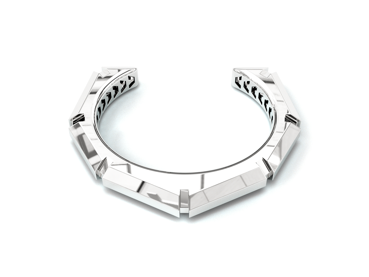Nova Mileniu, a sleek and modern look that draws inspiration from the technological advancements of this New Millennium. Walk towards the future and embrace its wonderous possibilities with this bold Sterling Silver Cuff.
