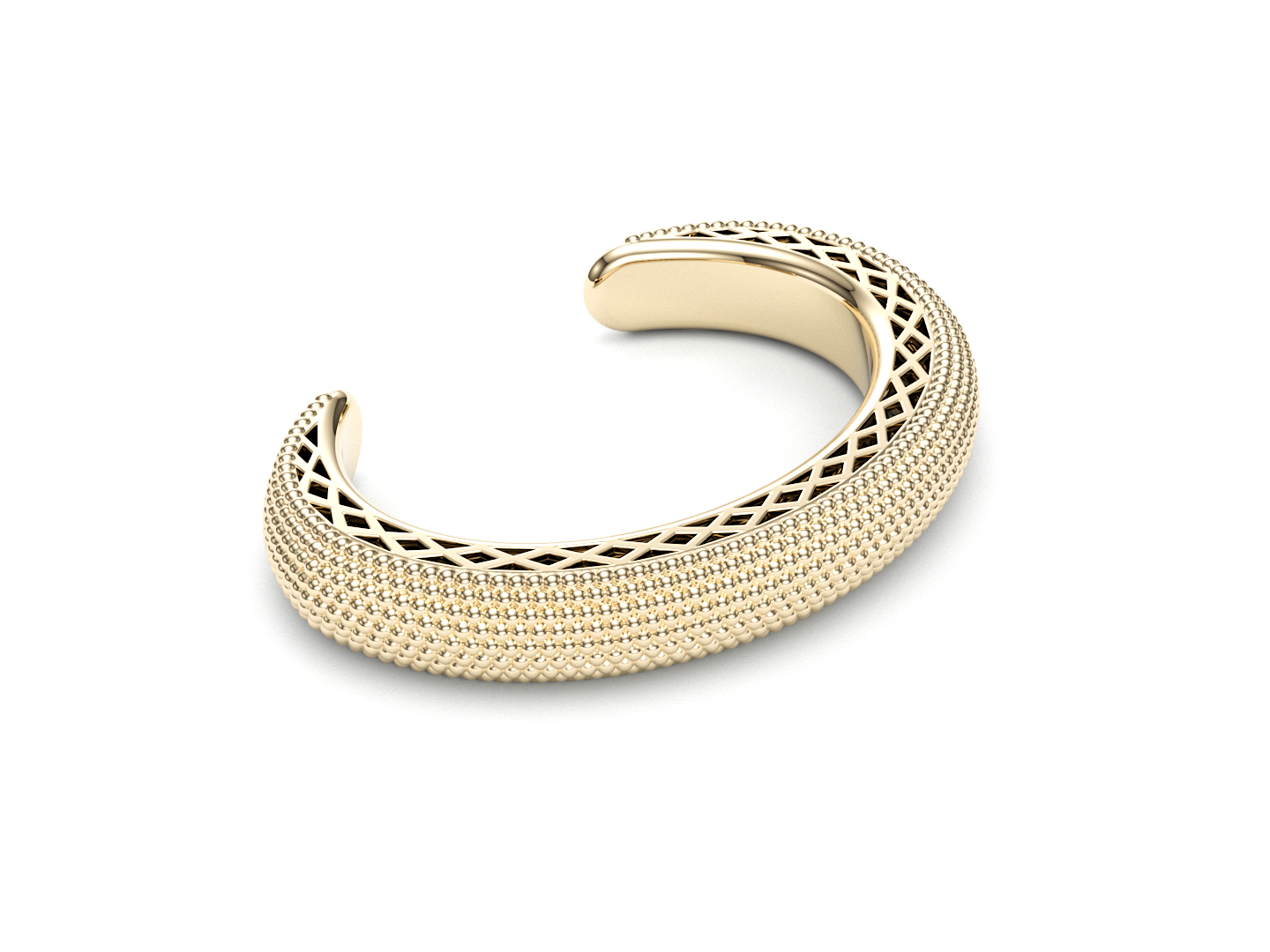 Pavé de Memori is a fusion of architecture and elegance representing one thousand precious memories captured, preserved and paved over the bridge of life, never to be forgotten. Carry with you the most precious memories that have been immortalized into this brilliant 18K Gold Cuff.